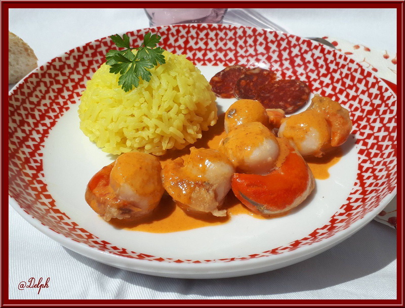 Mon fils adore le chorizo et les St Jacques alors je savais que cela lui ferait plaisir. Je te remercie Christelle pour ce plat délicieux.