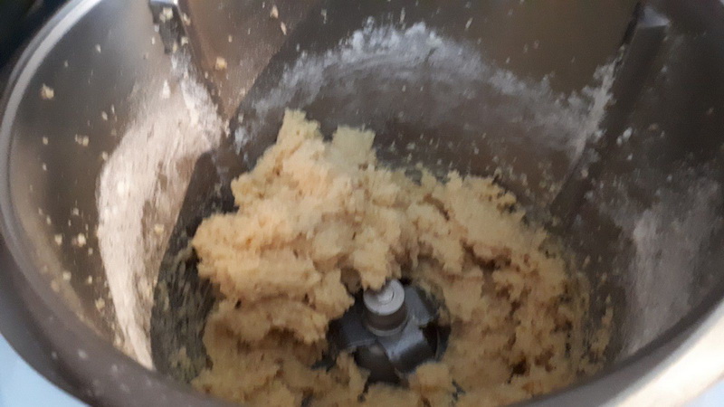 - Mettre le beurre mou coupé en dés et le sucre dans le bol puis mélanger 1 min/vit3, ajouter l’œuf, la farine et la levure puis mélanger 30sec/vit3.