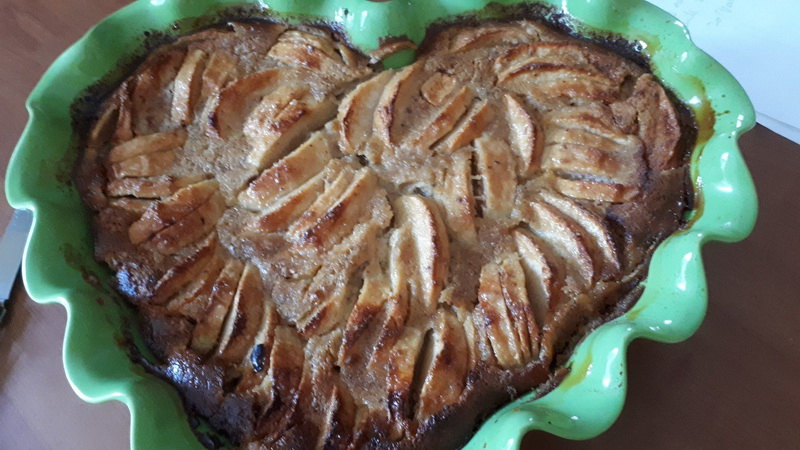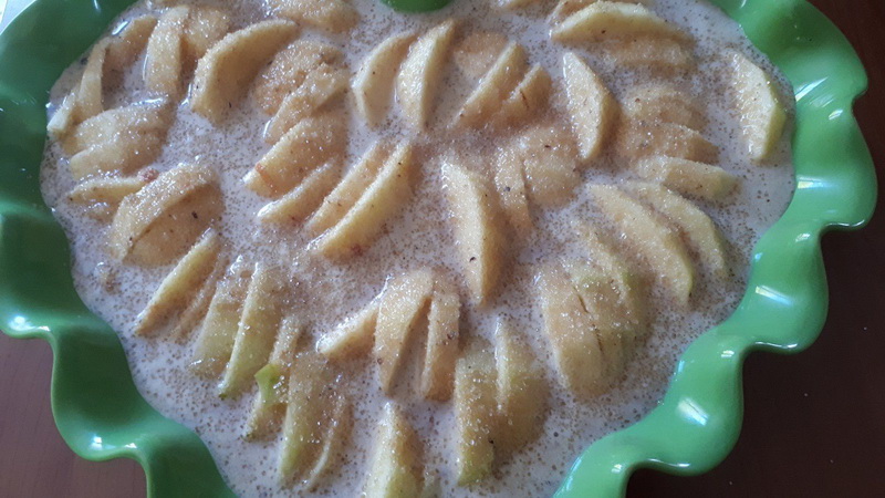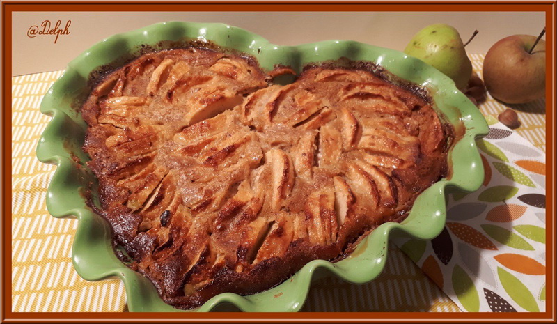 - Verser la préparation sur les pommes, parsemer le dessus avec les cuillerées à soupe de sucre cassonade puis enfourner pour 40 minutes de cuisson.