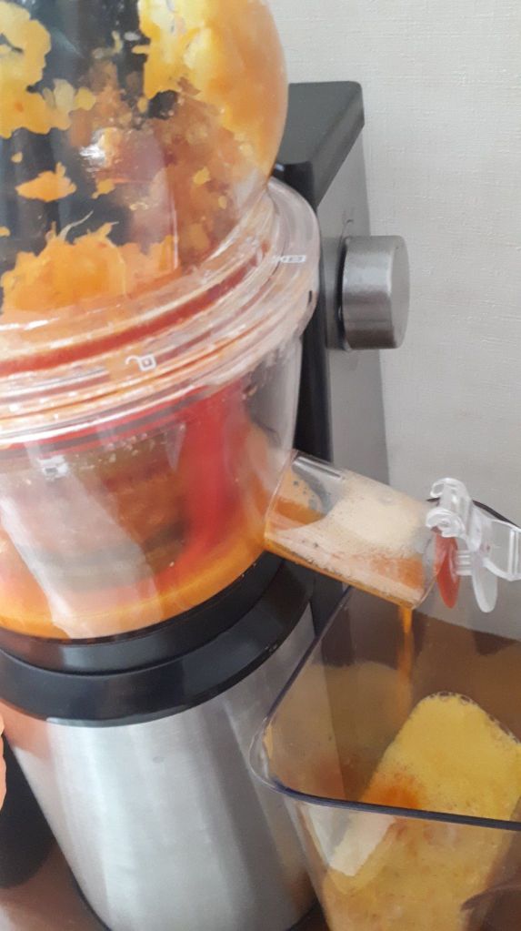 - Passer tous les ingrédients à l’extracteur en les alternant.