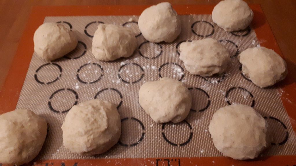 - Dégazer la pâte et former 10 boules. Laisser reposer 15 minutes.