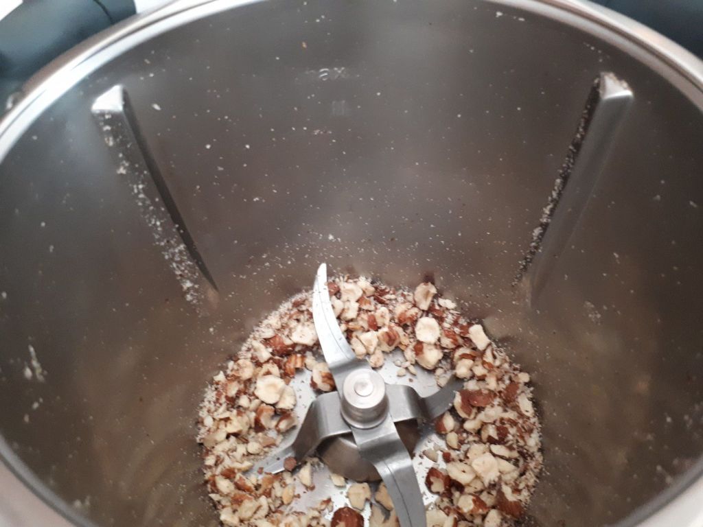 - Placer les noisettes dans le bol et mixer 4sec/vit5, puis débarrasser.