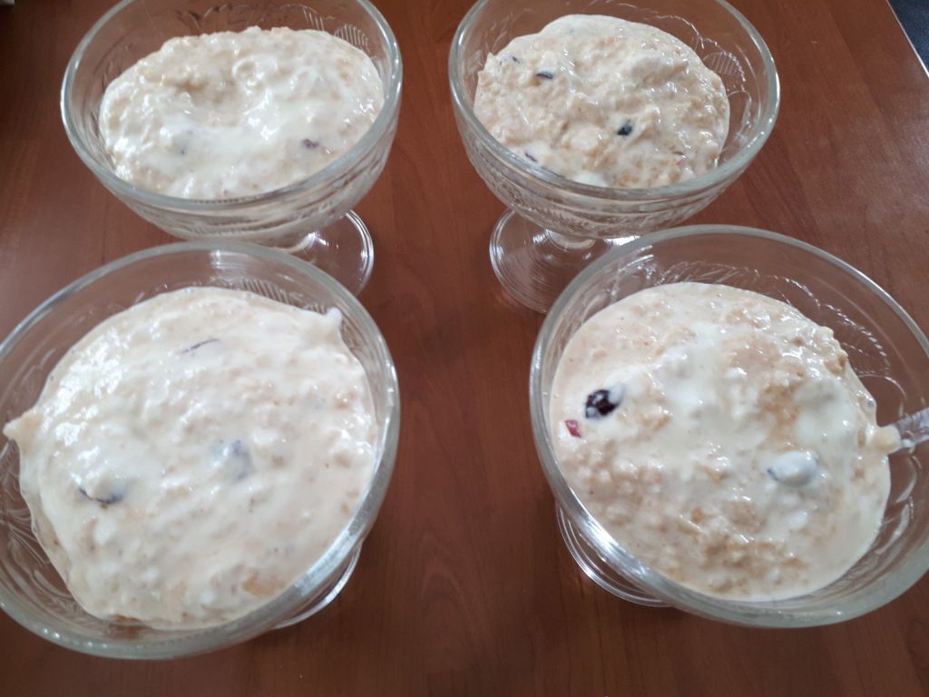 - Râper les pommes, avec une râpe à gros trous, puis les mélanger au fromage blanc, ajouter les cranberries et le miel, mélanger à nouveau.