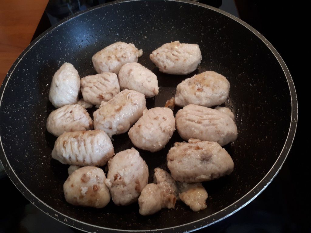 - En parallèle faire poêler vos gnudi dans une poêle anti adhésive pendant 3-4 minutes en les retournant régulièrement.