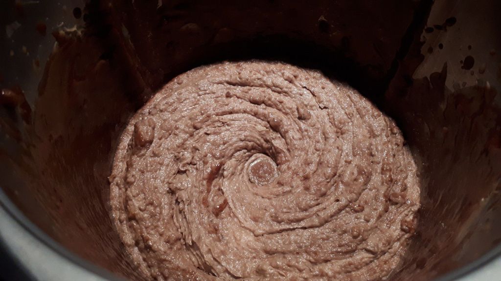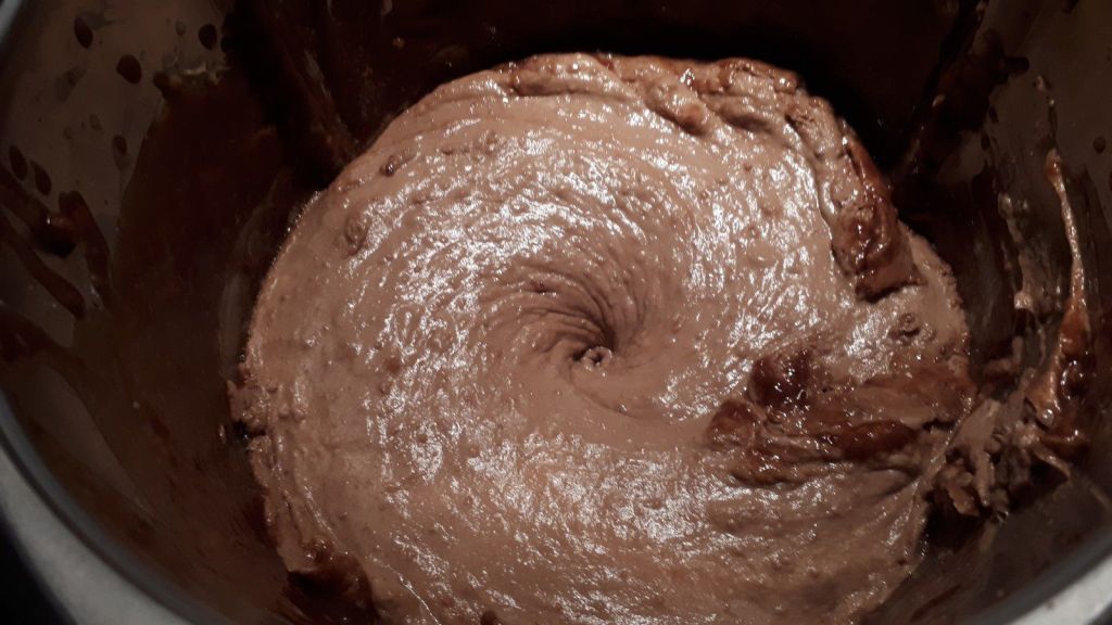 - Mettre le chocolat et les beurres dans le bol puis faire fondre 3min/50°C/vit2, racler les bords, ajouter la crème de marrons puis fouetter 40sec/vit4, ajouter les œufs et le sucre glace puis mélanger 40sec/vit4.