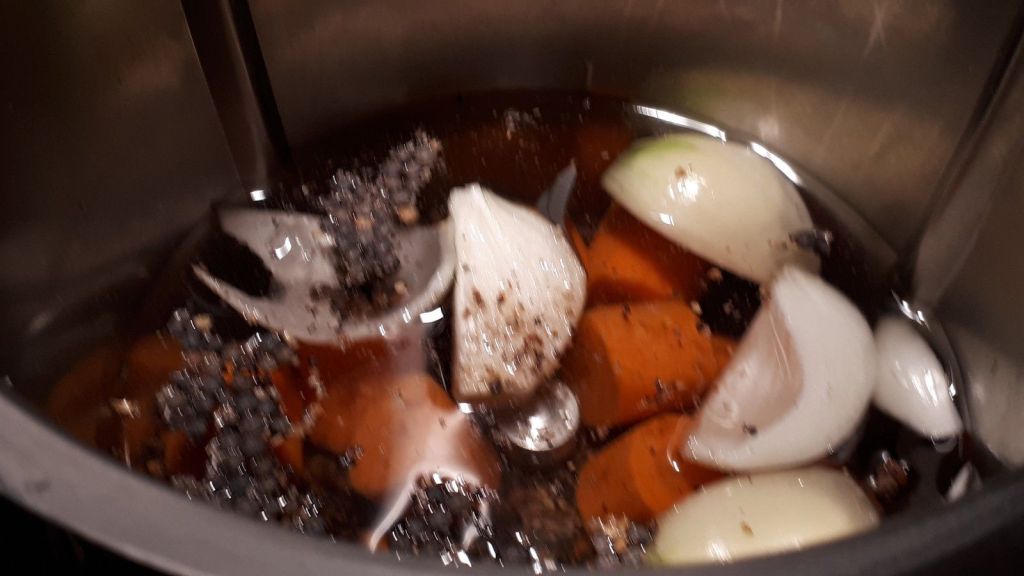 - Faire bouillir un grand volume d’eau salée dans une casserole. Y plonger les rondelles de carottes avec les lentilles et l’oignon.