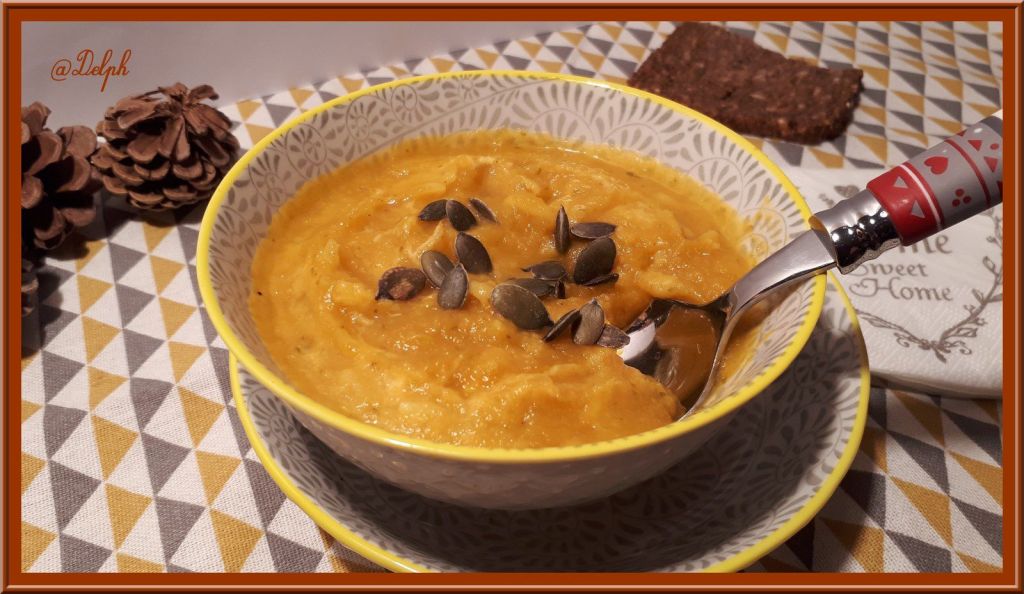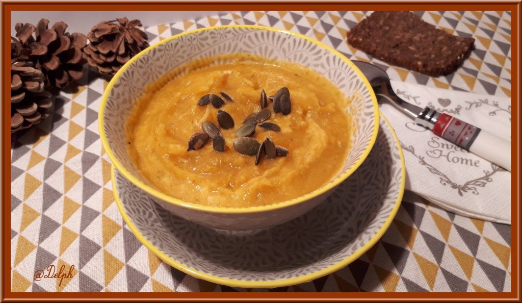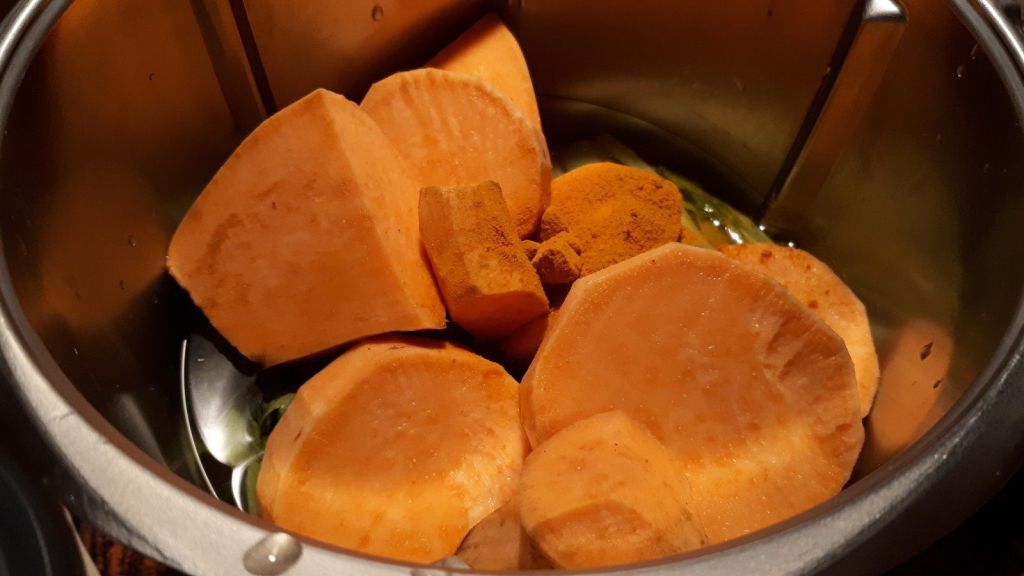 Encore une petite soupe bien agréable avec cette épice que j’apprécie beaucoup. Je l’ai réalisée avec mon Thermomix, mais vous pouvez la faire à la cocotte et mixer en fin de cuisson.