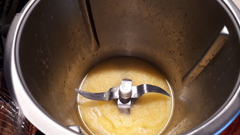 - Mettre le beurre dans le bol et faire chauffer 1min/80°C/vit3. Laisser refroidir quelques minutes.