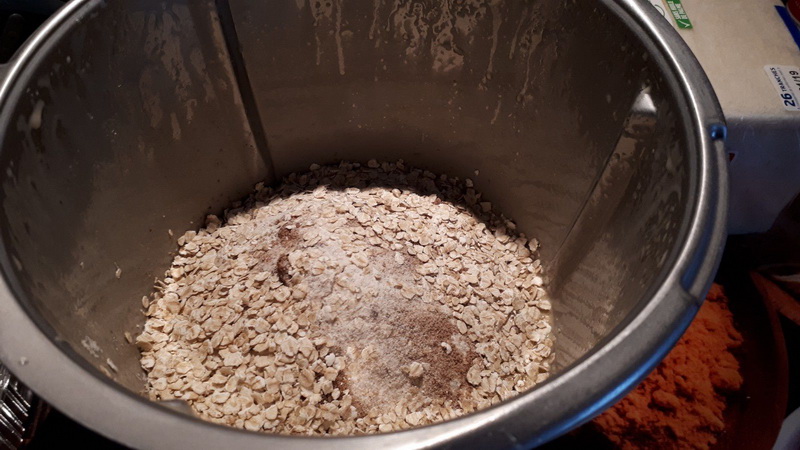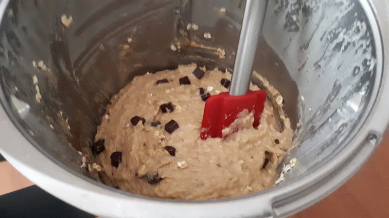 - Ajouter la farine, la levure, les flocons d’avoine et les pépites de chocolat puis mélanger 30sec/couteau inversé/vit3.