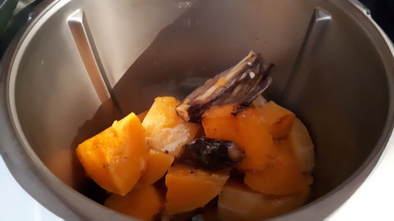 - Mettre le tout dans le bol du Thermomix, ajouter le mascarpone puis mixer 20sec/vit4, racler les bords et continuer 10sec/vit5.