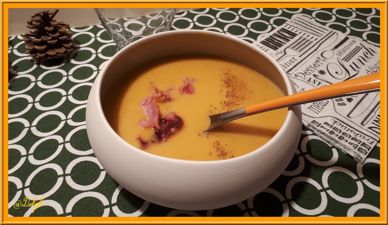 Voici une petite recette de velouté que j’ai trouvé sur la lettre de « La ruche qui dit oui ». Mon ajout personnel, la poitrine fumée.
