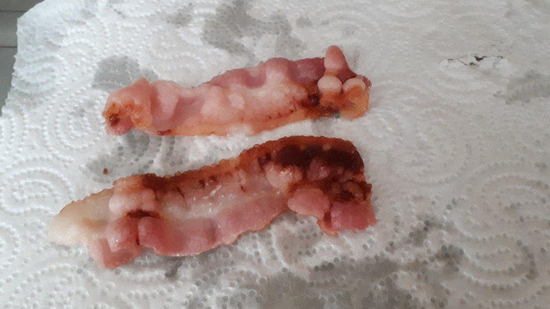 - Faire chauffer dans une poêle à sec, quelques minutes, vos tranches de poitrine, puis enlever le gras à l’aide d’un papier absorbant.