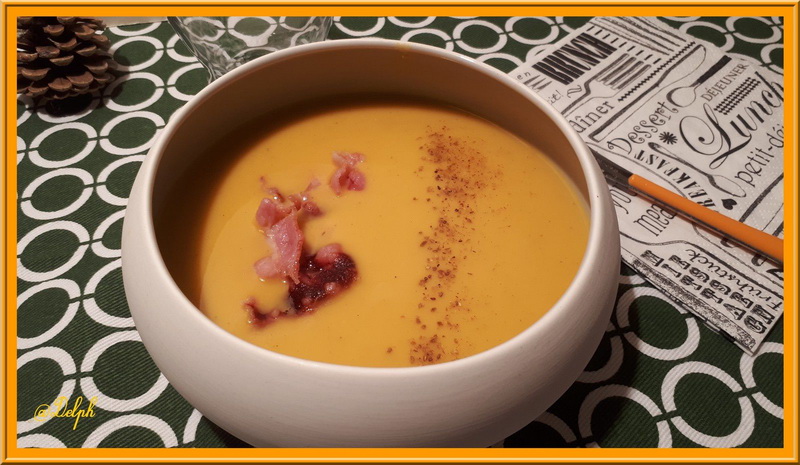 Voici une petite recette de velouté que j’ai trouvé sur la lettre de « La ruche qui dit oui ». Mon ajout personnel, la poitrine fumée.