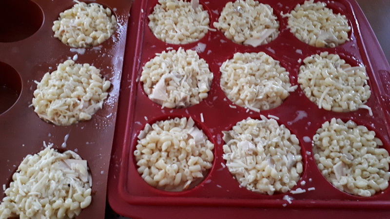 - Ajouter le poulet coupé en petits bouts et le Comté râpé, incorporer les pâtes égouttées, puis mélanger à nouveau.