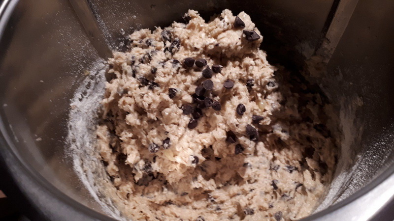 - Ajouter la farine, les flocons d’avoine, la levure et le sel puis mélanger 30sec/couteau inversé/Vit3. Ajouter les pépites de chocolat et mélanger 20sec/couteau inversé/vit3.