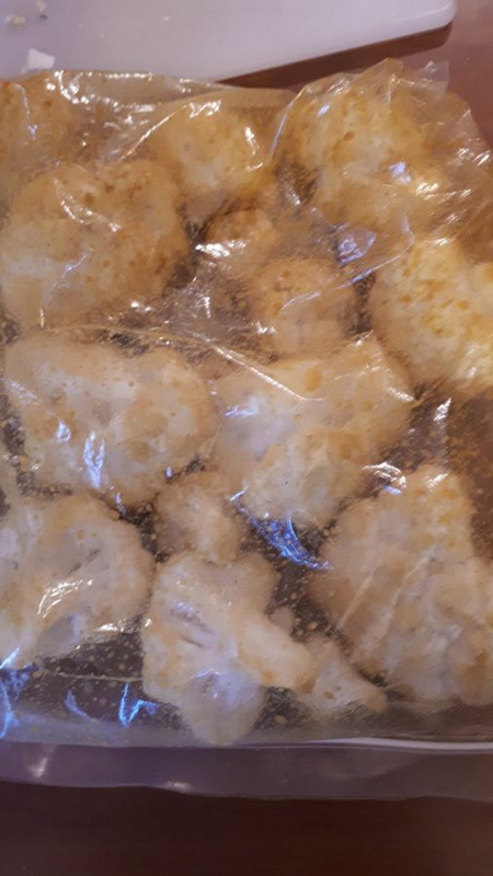 - Fermer le sac et le secouer afin que toutes les fleurettes soient bien imprégnées d’huile d’olive et de cumin.