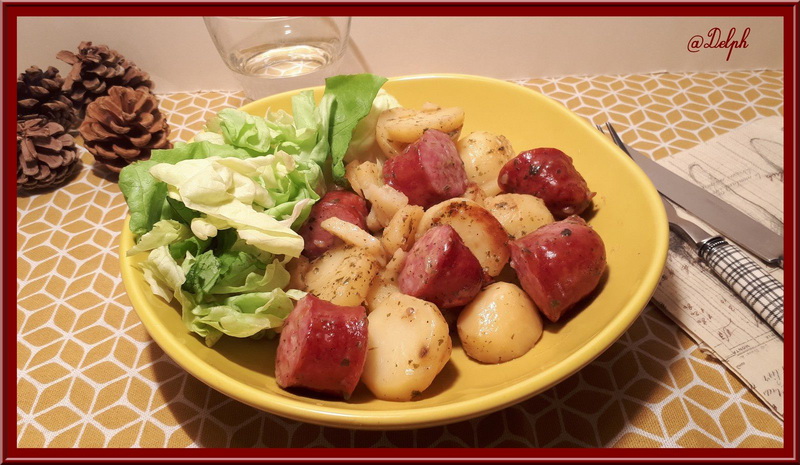 Ca me plairait aussi ! c’est tout simple mais avec ces bonnes saucisses ou des Diots c’est super bon !! gros bisous delphine