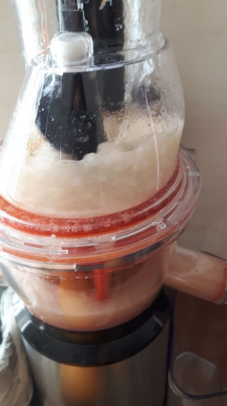 Avec l’extracteur votre jus sera prêt en quelques minutes. Je vous conseille de mettre vos ingrédients au réfrigérateur, il sera encore meilleur bien frais. 😗