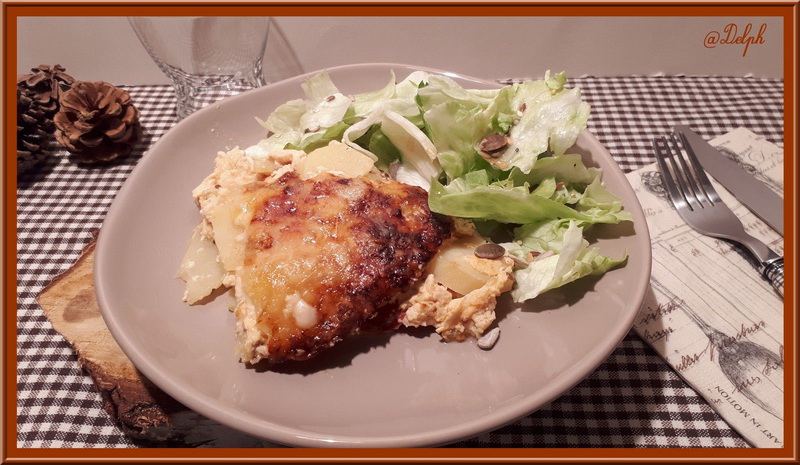 Et voici un gratin pour mes hommes, il y a quelques temps j’avais fait un gratin de pommes de terre à la truite, avec lequel nous nous étions régalés. J’ai donc réitéré en changeant certains ingrédients.