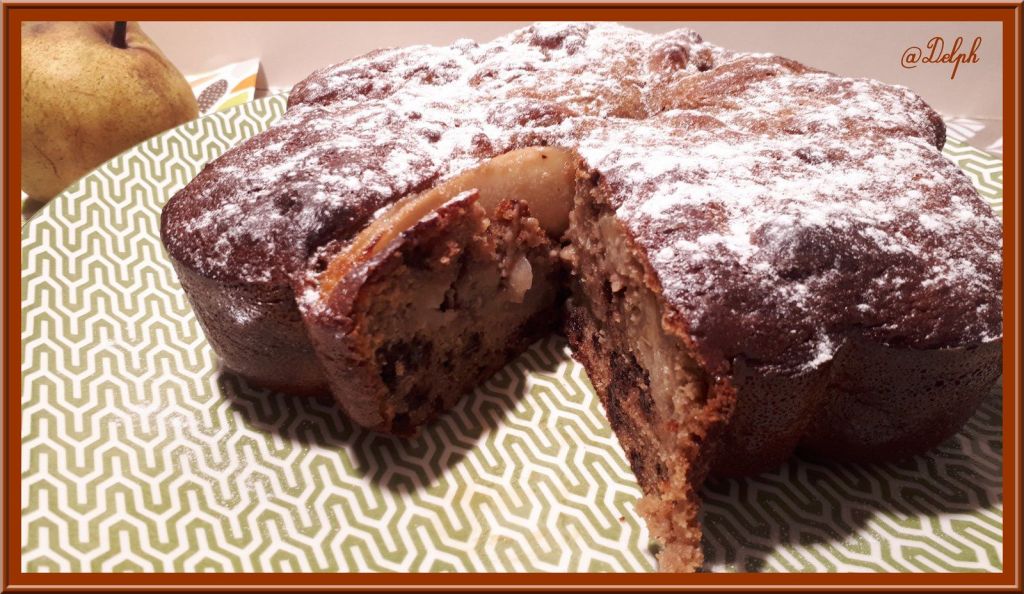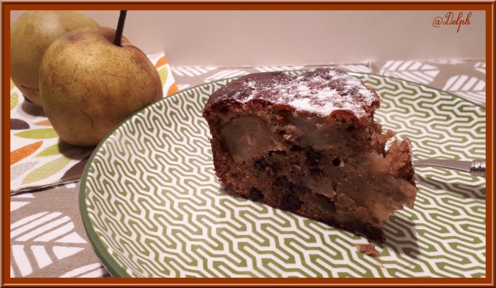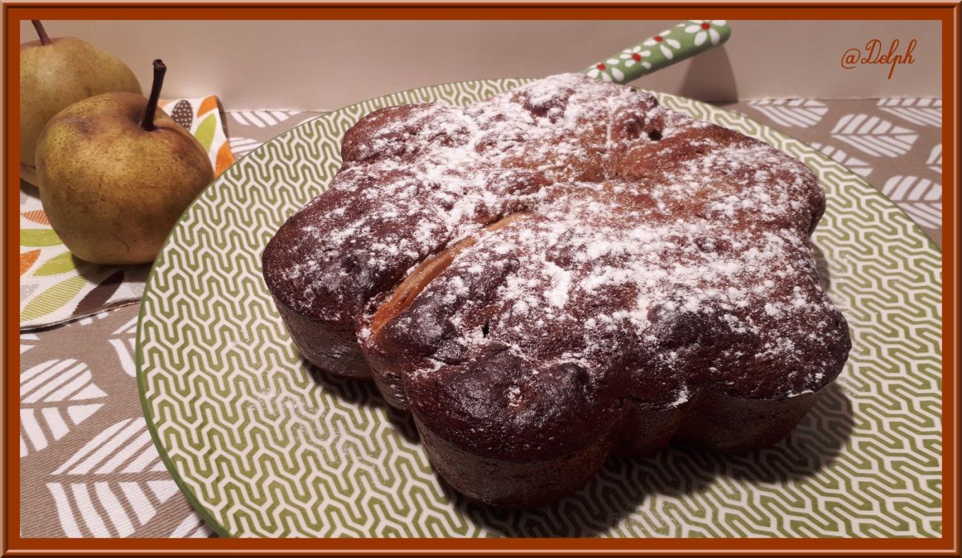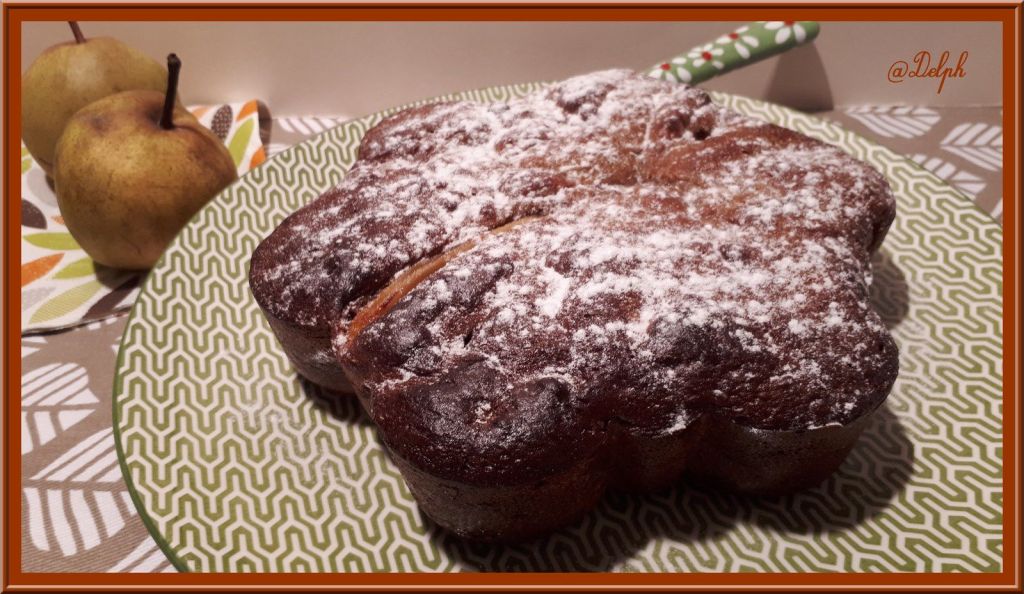 Voici un gâteau gourmand avec une alliance de saveurs que j’aime beaucoup, la poire et le chocolat..Ce gâteau est moelleux à souhait. Je vous le conseille pour votre goûter