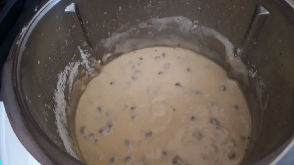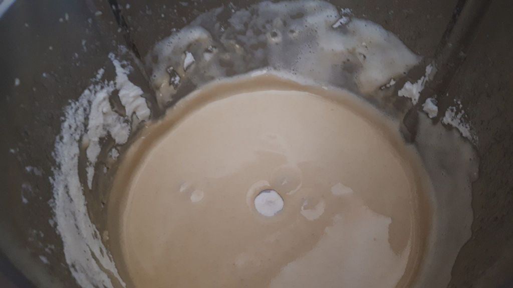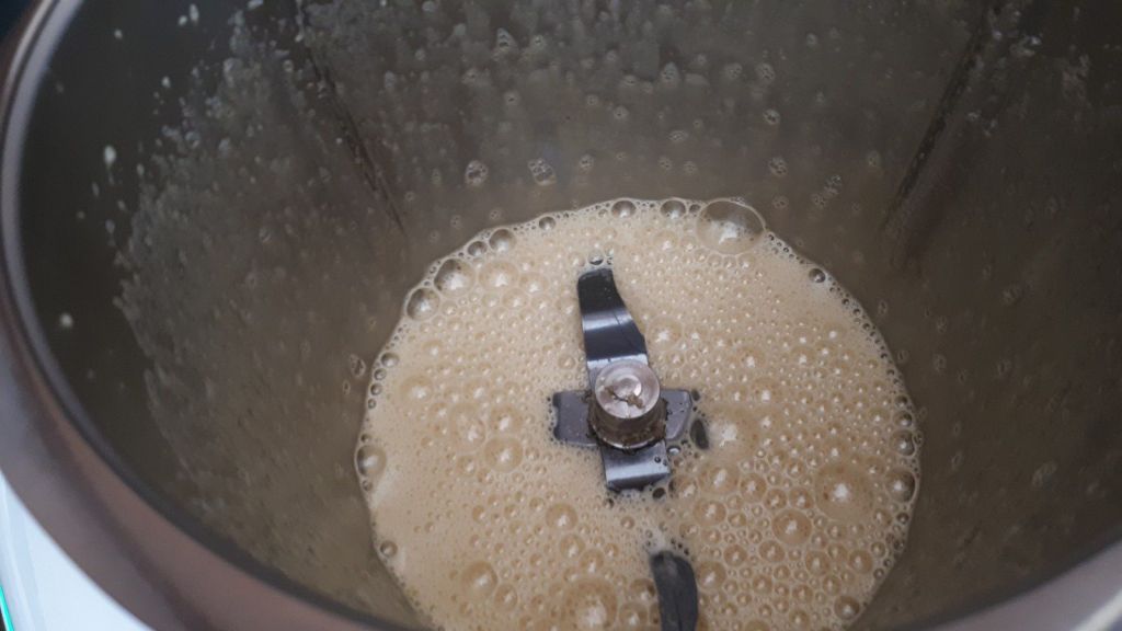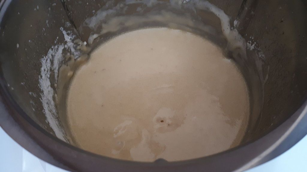 - Mettre le sucre et les œufs dans le bol du Thermomix puis mélanger 1min/vit4, ajouter le lait et mélanger 20sec/vit3, ajouter la farine et le bicarbonate puis mélanger 30sec/vit4.