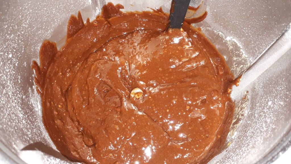 - Dans un cul de poule mélanger le sucre et les œufs jusqu’à blanchiment, incorporer le chocolat fondu, la farine tamisée, la maïzena, et la pincée de fleur de sel, puis bien mélanger le tout, ajouter les noisettes et mélanger.