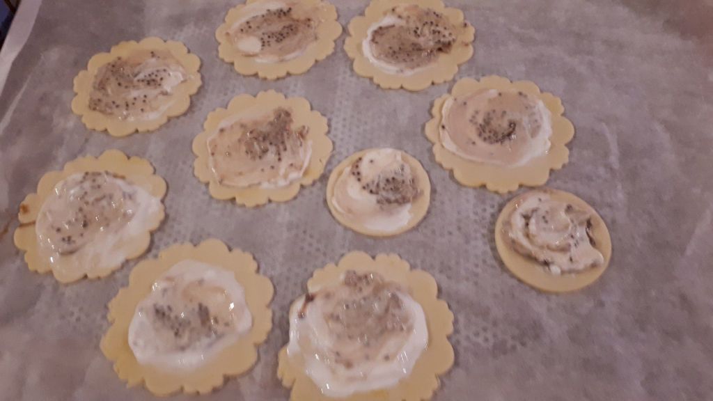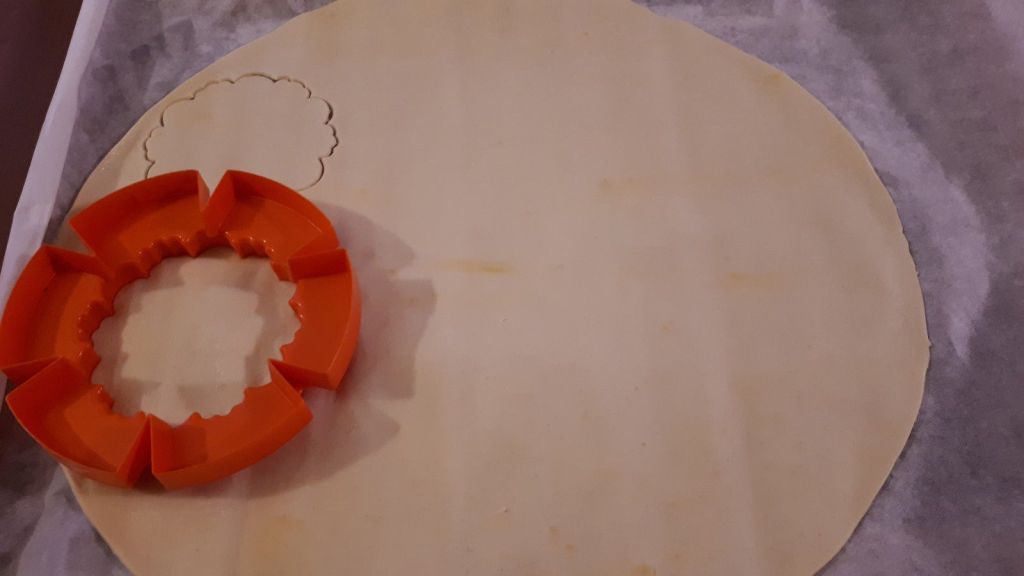 - Abaisser votre pâte feuilletée et détailler vos tartelettes à l’aide d’un emporte-pièce.