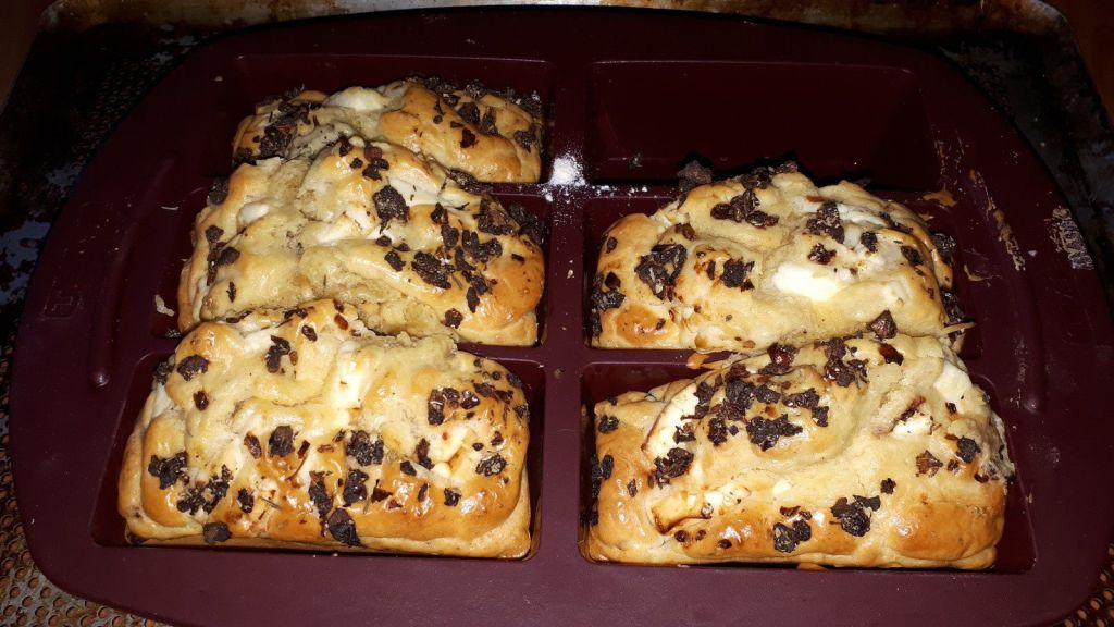 Ne faites pas comme moi, ne remplissez pas trop vos moules, car à la cuisson ils lèvent beaucoup, comme cela vous pourrez obtenir 6 cakes individuelles. J’ai saupoudré de mélange Provençal, mais vous pouvez prendre de l’origan.