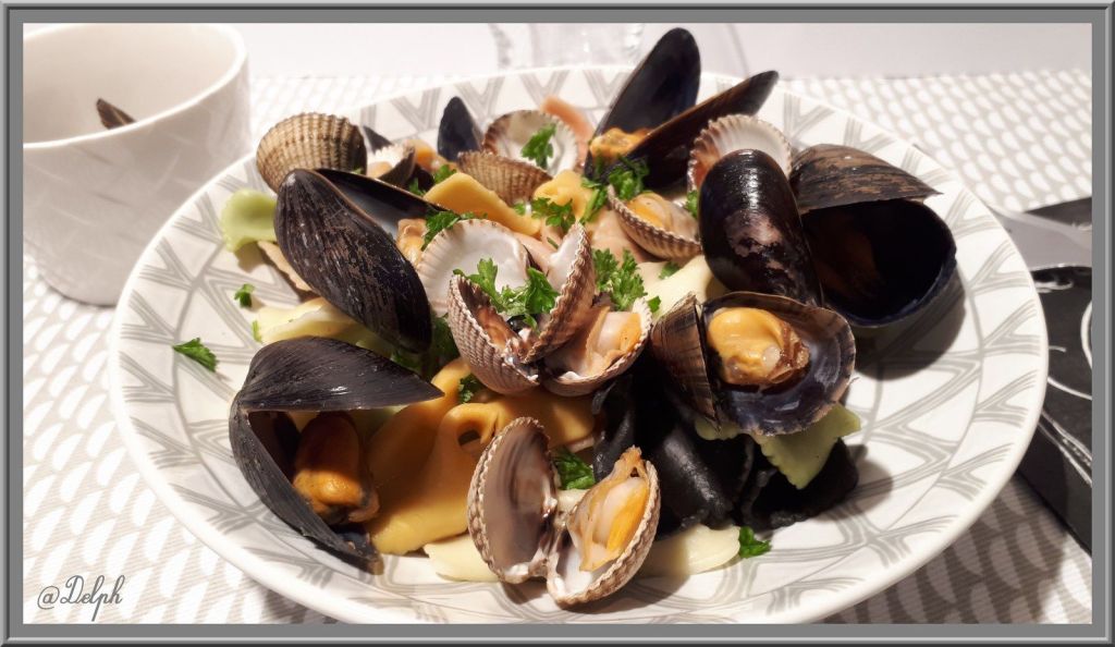 - Éplucher et ciseler votre échalote, éplucher et dégermer votre gousse d’ail puis la hacher, les faire revenir avec votre huile d’olive, lorsque le tout est bien coloré, ajouter le vin blanc et les coquillages, assaisonner, couvrir votre sauteuse puis laisser chauffer 3 minutes, au bout de ce temps, enlever le couvercle, mélanger et poursuivre la cuisson 2-3 minutes.
