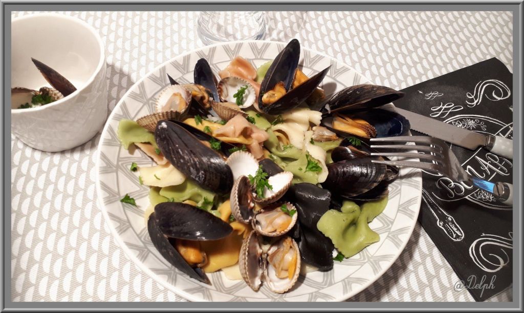 Voici un repas très simple et très rapide à réaliser, après dégustation mon fils m’a dit que j’aurai peut être du prendre des pâtes traditionnelles, des spaghetti natures par exemple..Je vous avoue j’ai bien aimé avec ces pâtes, après c’est selon vos goûts. Je lui ai donc dit que la prochaine fois cela sera avec des spaghetti…