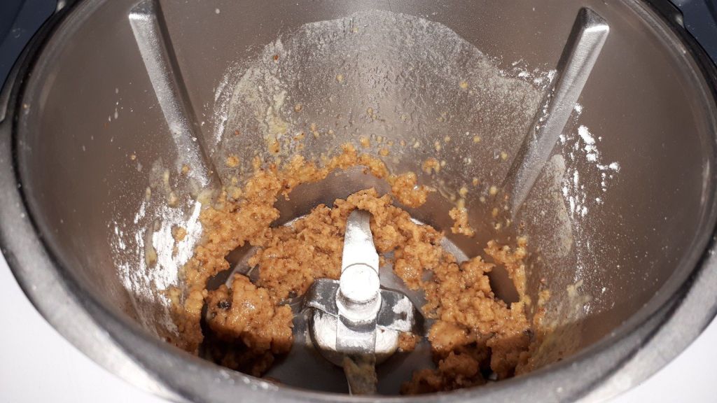 - Déposer dans votre bol, votre beurre coupé en morceaux puis le faire fondre 2min/80°/vit2, ajouter la farine, le sucre et la levure, mélanger 30sec/vit3; ajouter l’œuf, la pâte de pistache et les pistaches puis mélanger 20sec/vit5.