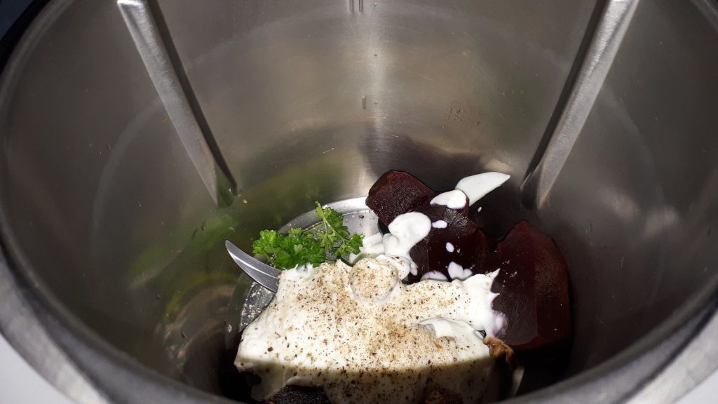 - Couper votre betterave, la déposer dans votre bol avec tous les autres ingrédients puis mixer 30sec/vit5.