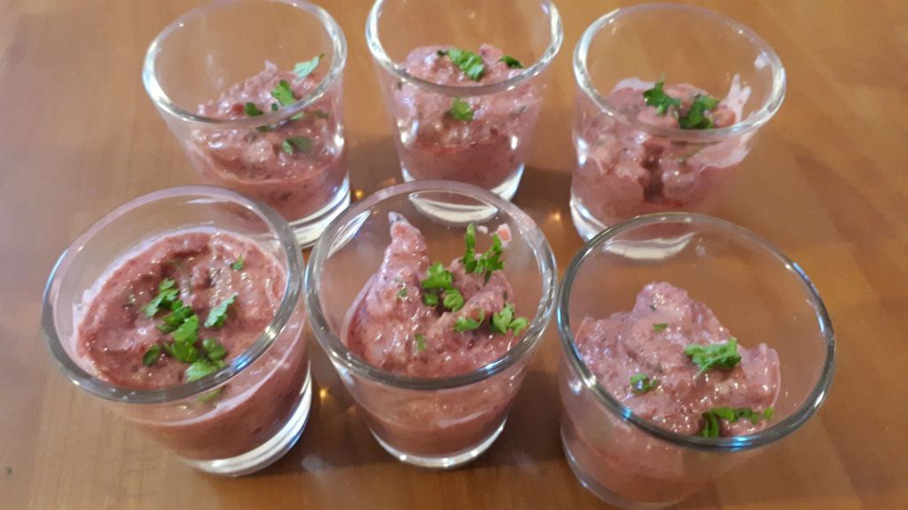 - Déposer cette préparation dans des verrines, puis décorer à l’aide graines de sésame, ciseler un peu de persil.