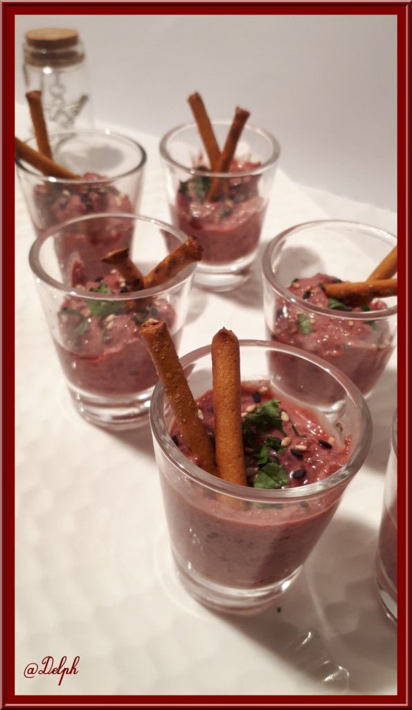 Voici des petites verrines, saines et lights. J’ai réalisé ces verrines au Thermomix, mais vous pourrez les réaliser avec un bon mixeur, ou blendeur.