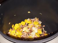 - Mettre le Cookéo en mode dorer, y déposer votre oignon épluché et ciselé, votre carotte épluchée, lavée et coupée en rondelles et les lardons puis faire dorer 2 minutes en remuant.