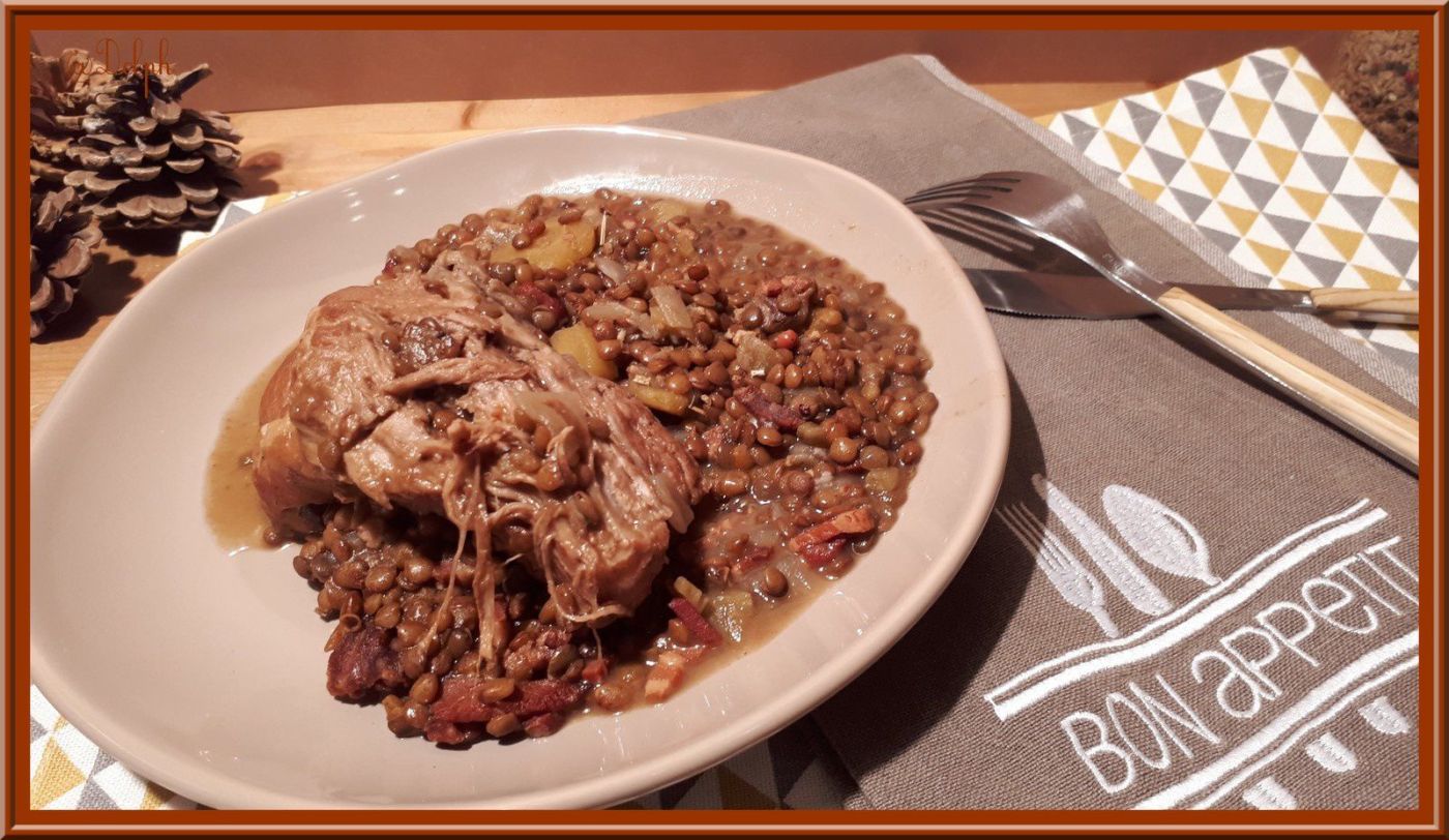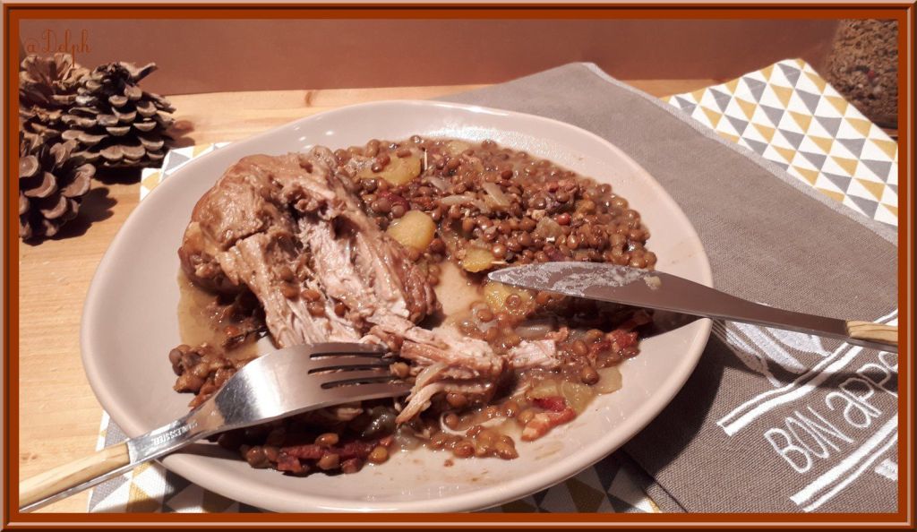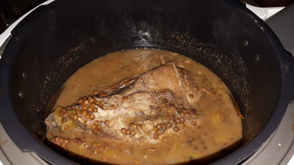 - Ajouter votre palette, le bouillon, la feuille de laurier, le thym, le poivre et les lentilles et mettre en mode sous pression pendant 35 minutes.
