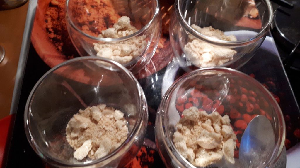 - Écraser vos biscuits grossièrement puis les disposer au fond de vos verres, mettre par dessus une couche de mangue refroidie.