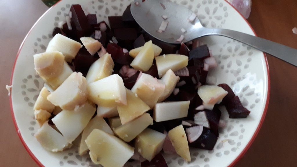 - Éplucher la betterave et la couper en dés.
