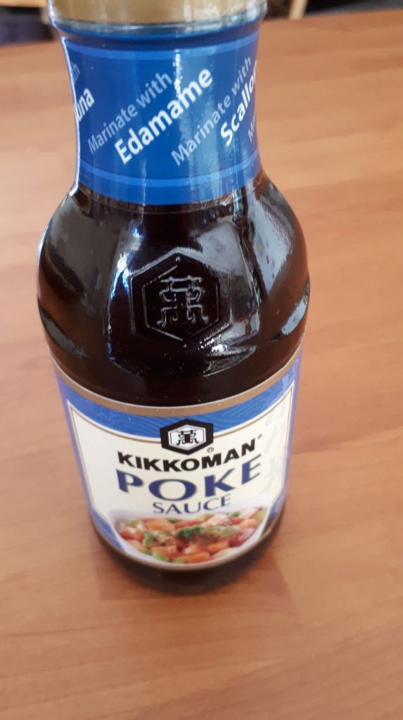 J’ai reçu la toute nouvelle sauce de Kikkoman, la sauce Poke, elle contient de la sauce soja naturellement fermentée, de l’huile de sésame, du jus de citron et un peu de piment.