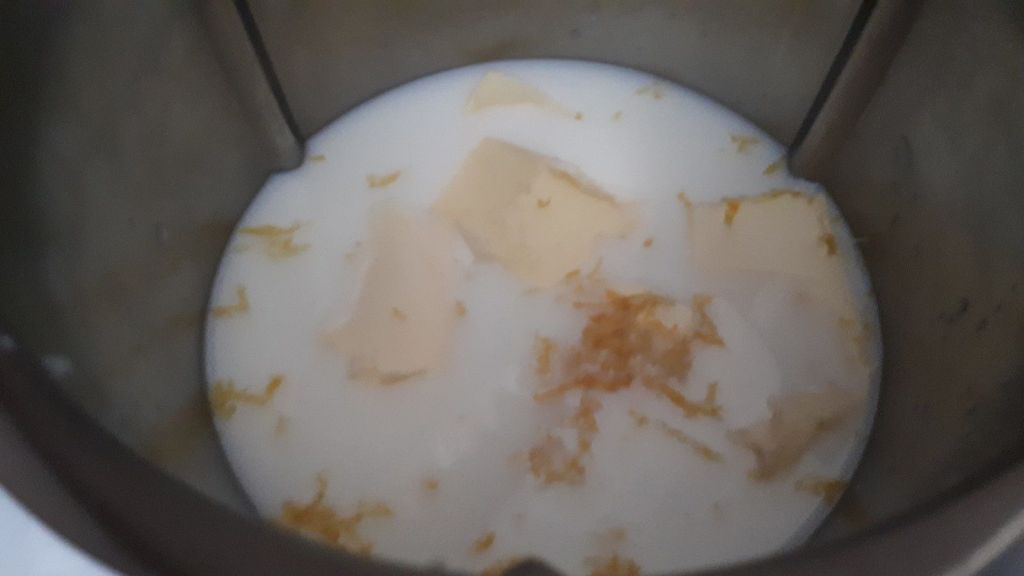 - Dans une casserole, porter à ébullition le lait, l’eau, le beurre et les zestes du citron.