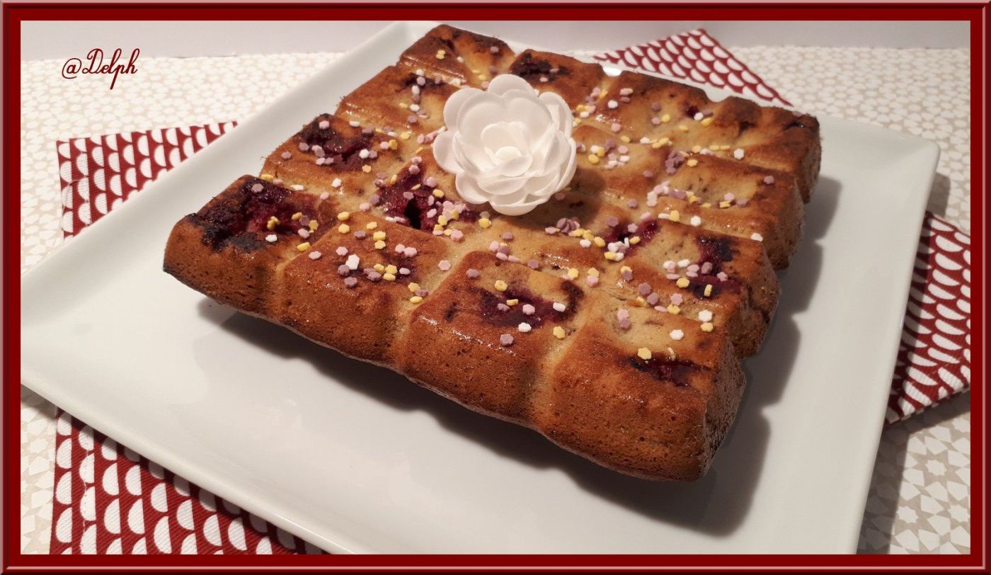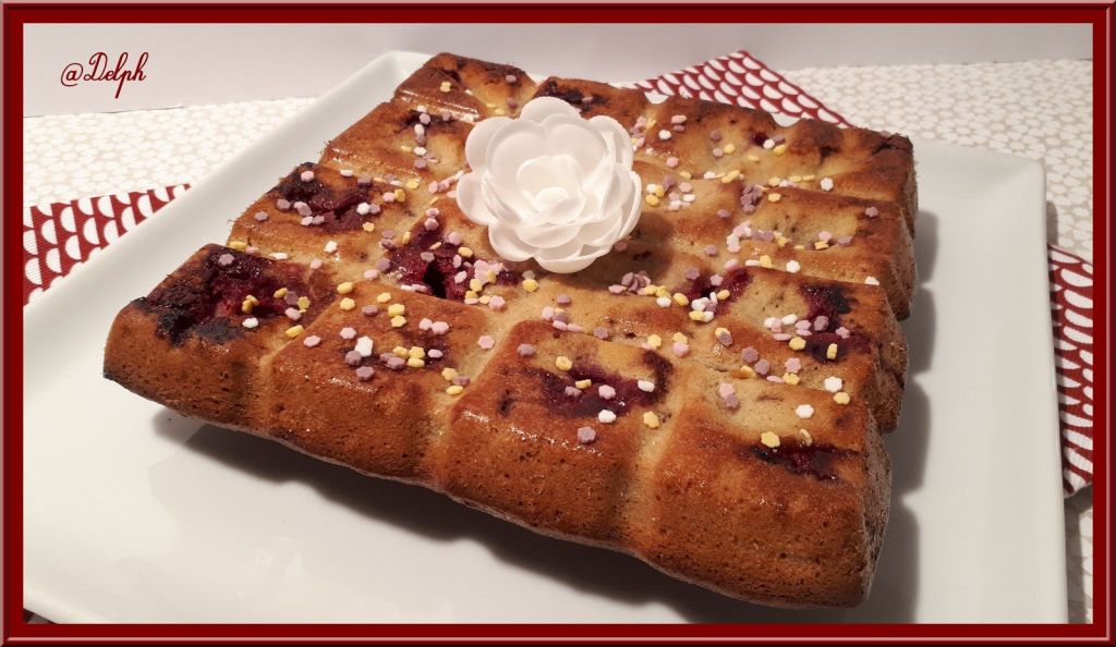 - Repartir cette préparation dans des moules à financiers, ou un plus grand moule plat (moule tablette pour moi). Déposer au préalable des framboises dans chaque carrés du moule tablette, pour les moules à financiers déposer les framboises sur le dessus.