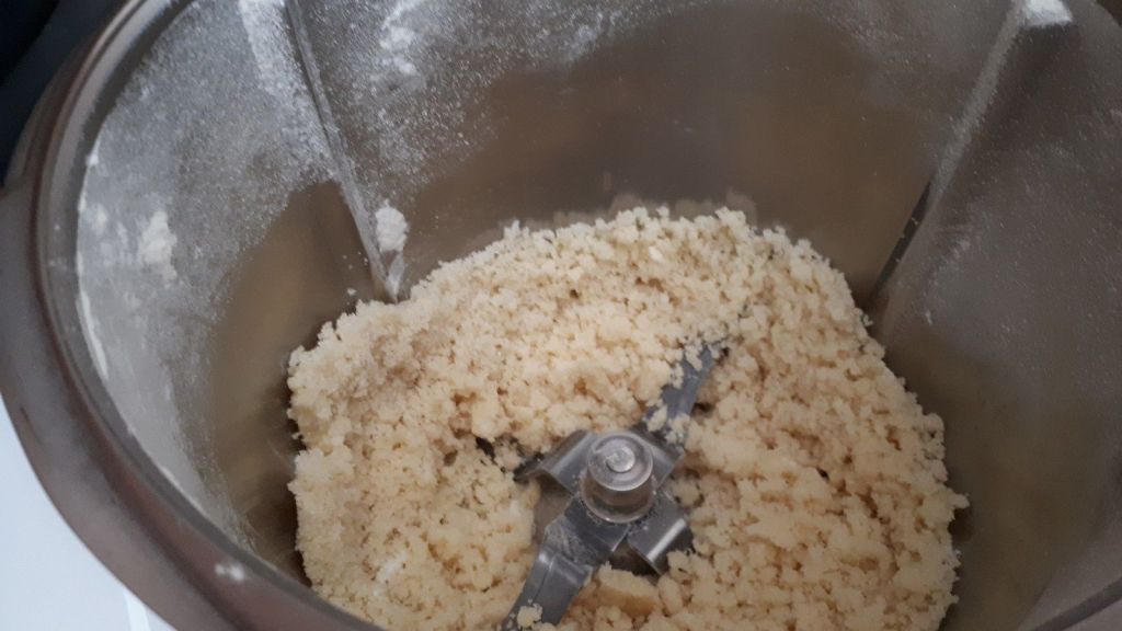 - Mettre le sucre, la farine et le beurre coupé en morceaux dans le bol puis mixer 20sec/vit4.