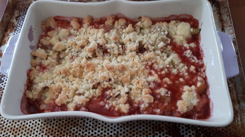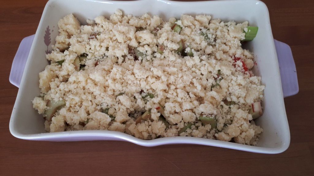 - Disposer le crumble sur les fruits puis enfourner pour 30 minutes.