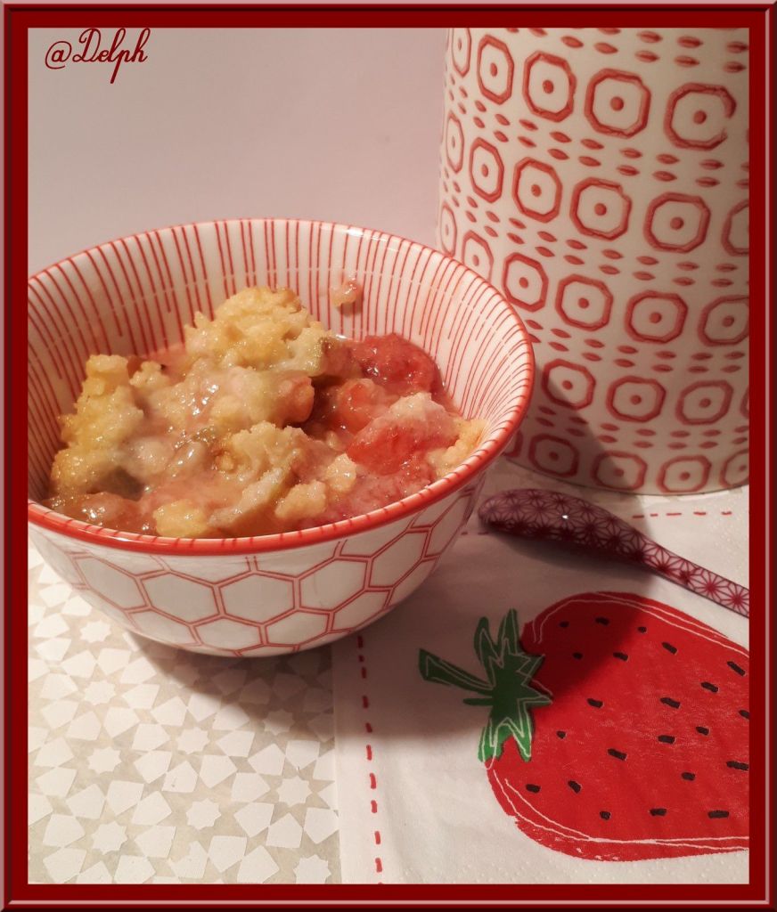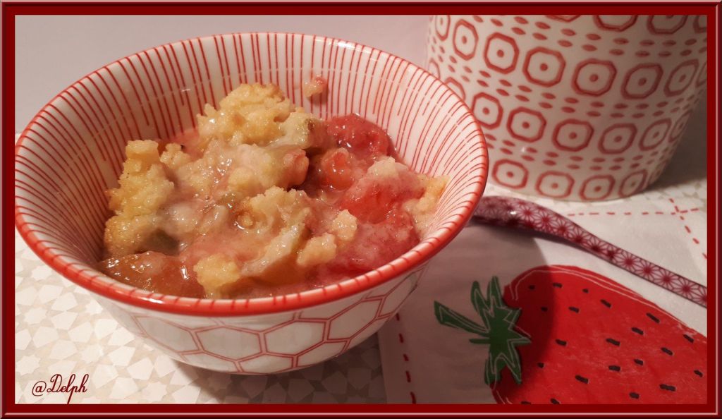 J’adore associer la fraise et la rhubarbe, alors pour le défi organisé par Sonia Tests de recettes entre blogueurs, j’ai jeté mon dévolu sur ce crumble proposé par notre adorable Vanessa du blog « Popote de petit-bonhium« ..Je suis vraiment une grande fan de son blog, je me régale à tout les coups.