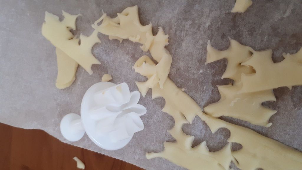 - Avec le reste de pâte j’ai fait quelques petites fleurs avec un découpoir.