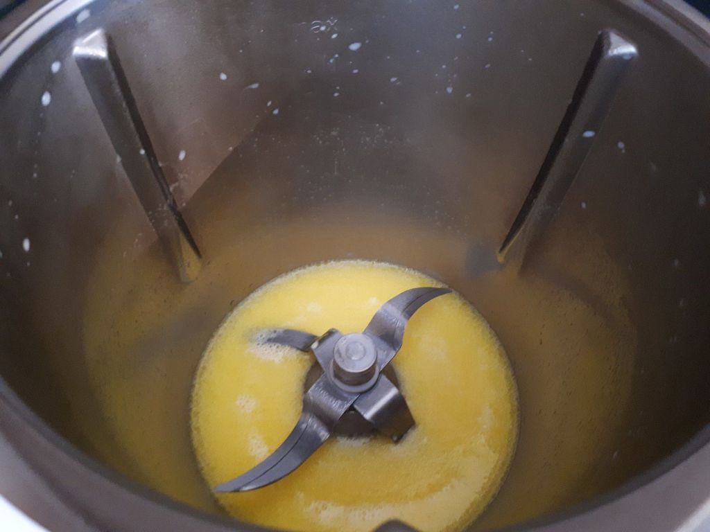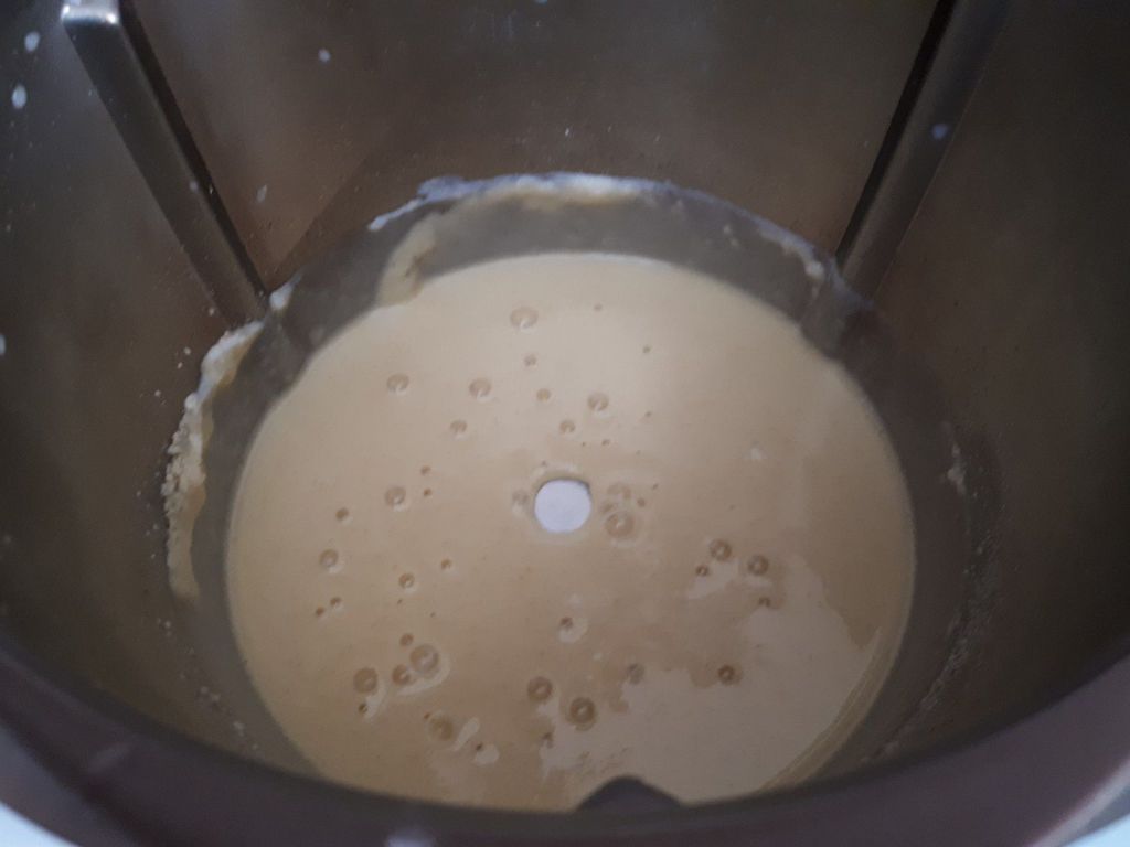 - Mettre le lait et le beurre coupé en morceaux dans le bol du Thermomix puis faire chauffer 1min30/90°C/vit2.