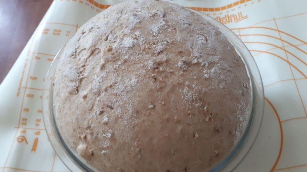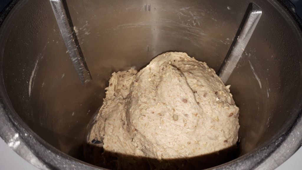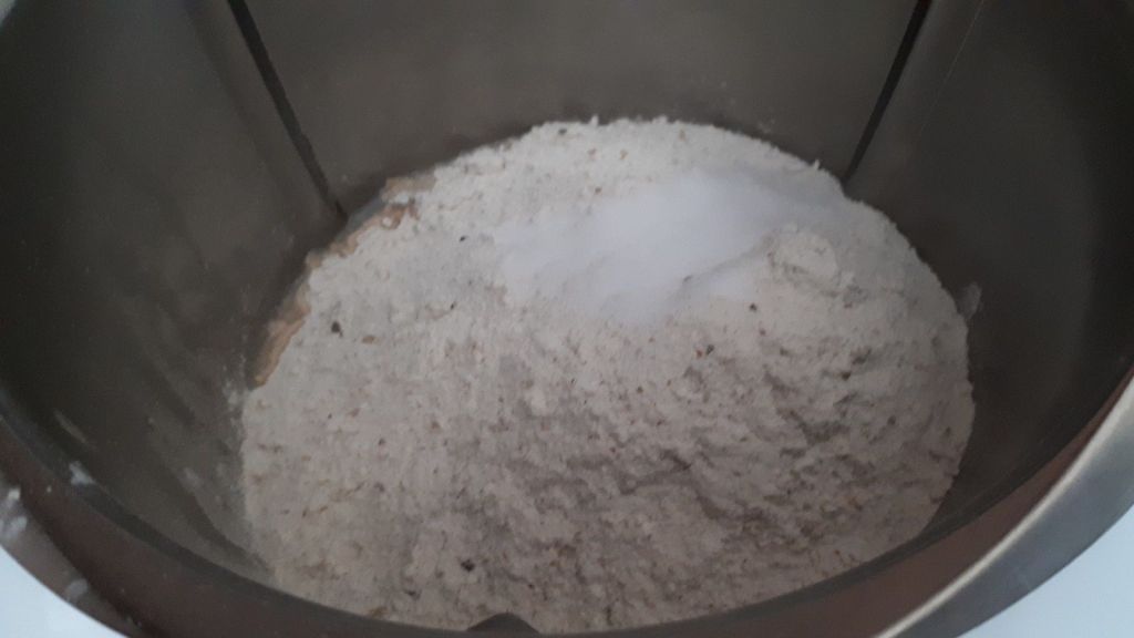 - 500 g de farine de gruau (Pour moi farine céréales et graines, préparation pour pains)