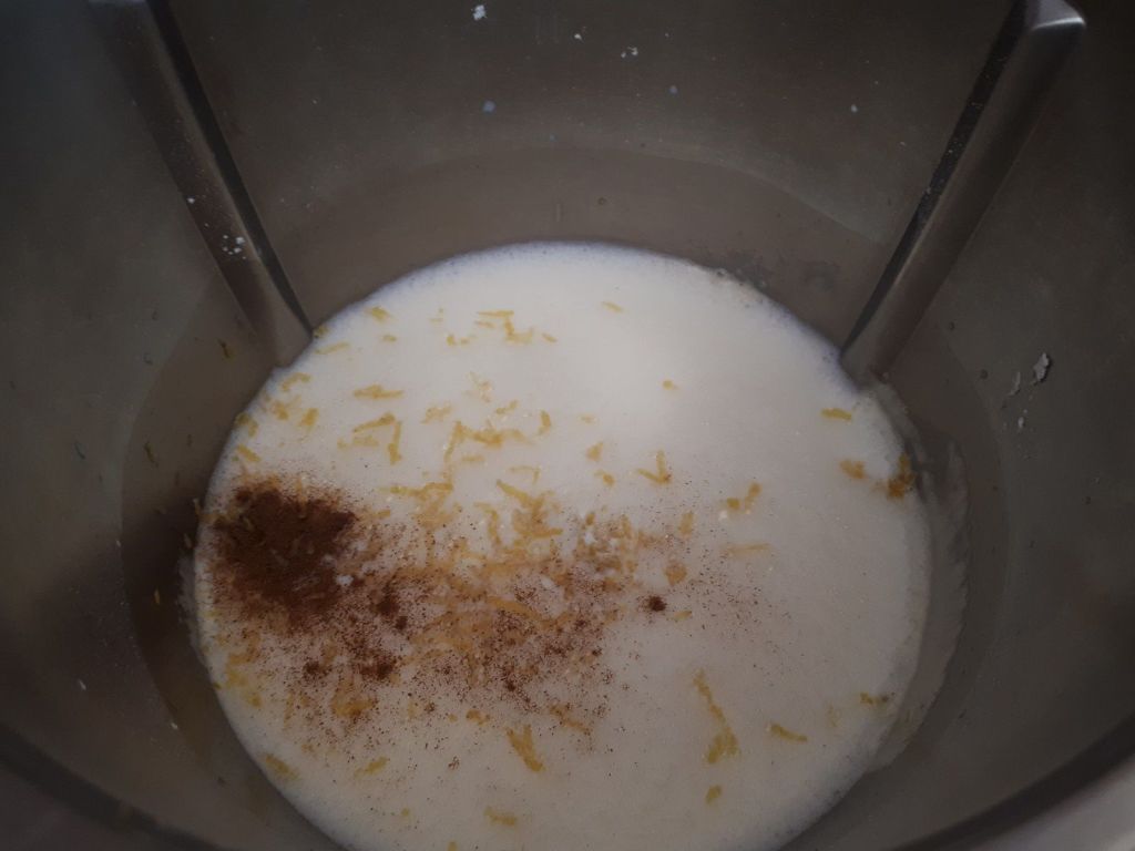 - Ajouter les zestes du citron, la cannelle puis faire chauffer 10min/90°C/vit3 sans gobelet.