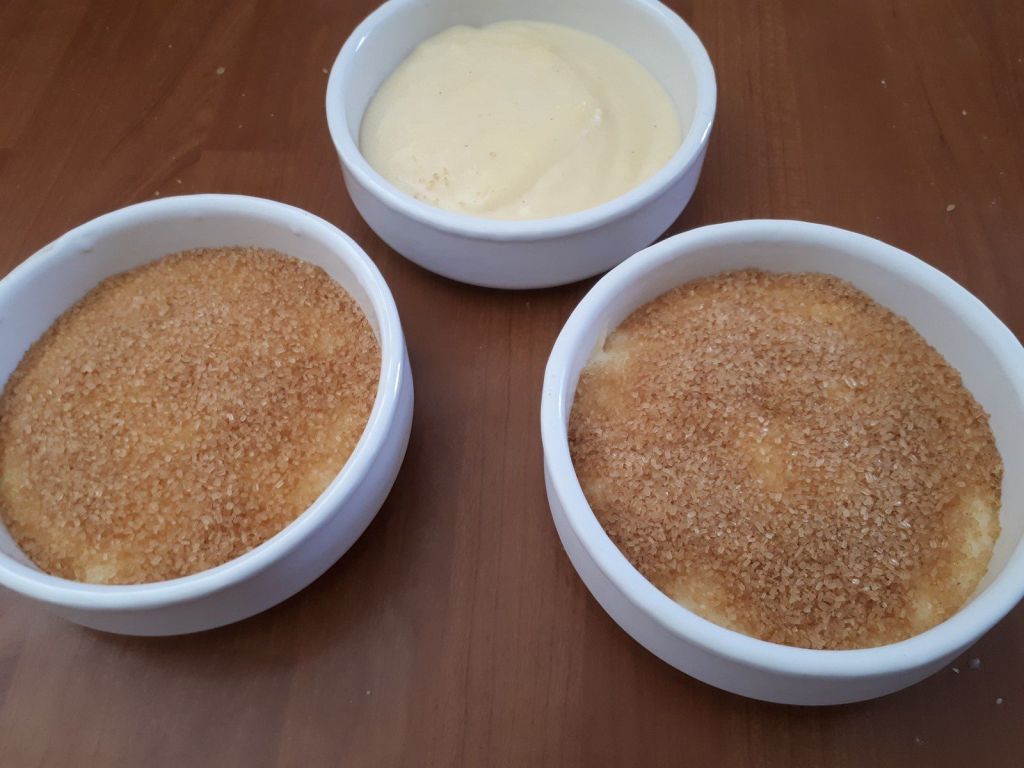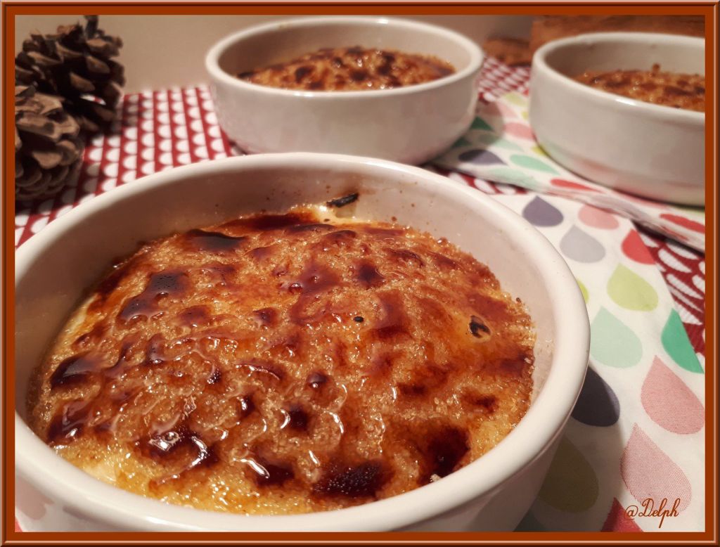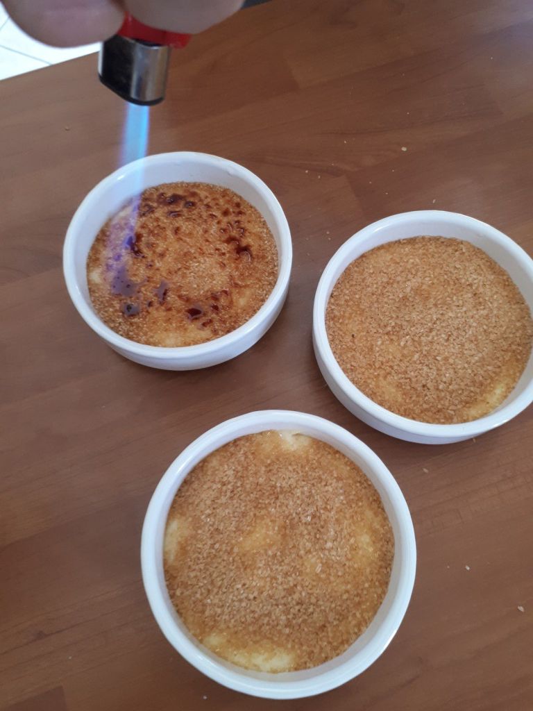 - Au moment de servir, saupoudrer les crèmes de cassonade et caraméliser à l’aide d’un chalumeau.