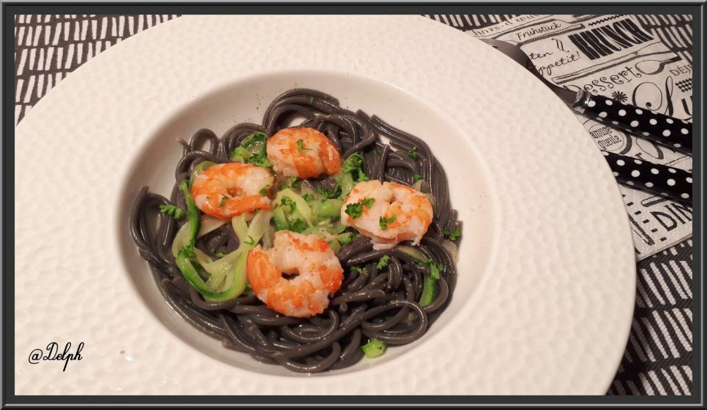 Voici une recette pleine de saveurs, les spaghettis cuisent dans le bouillon de crevettes et cela leur donne un très bon goût. Les spaghettis de courgette cuisent pendant ce temps à la vapeur et deviennent fondantes à souhait.